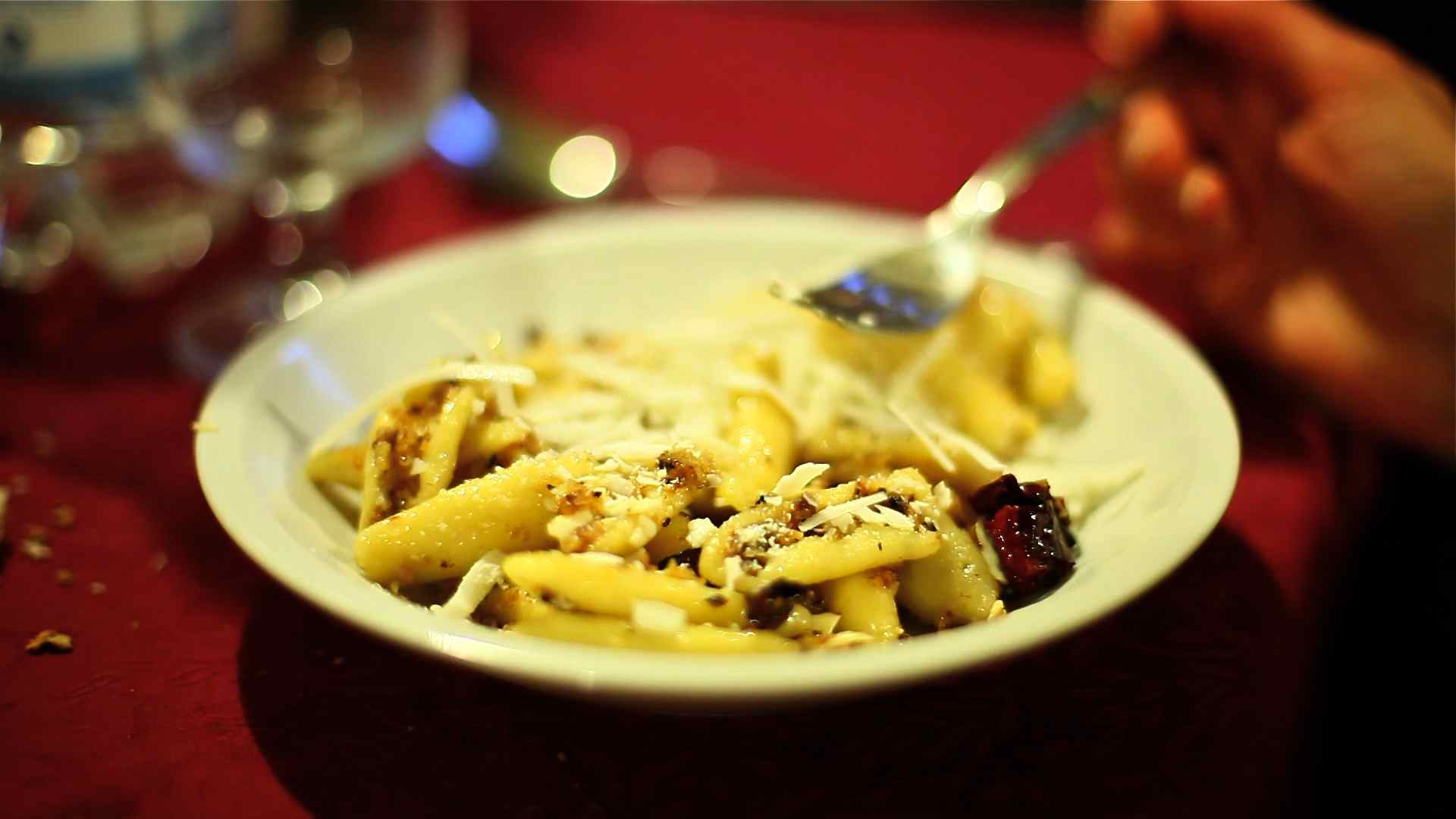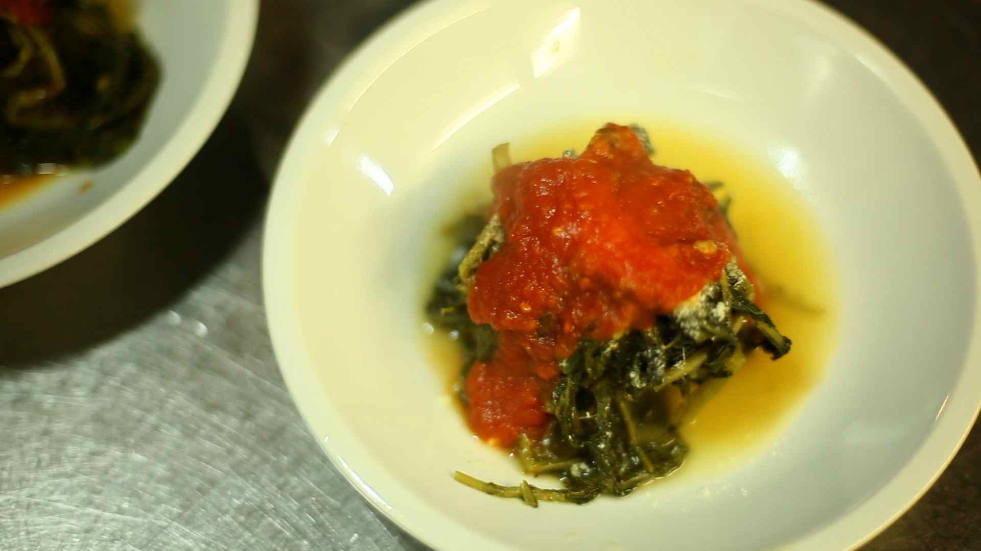 As I was getting ready for bed, a few friends from this quaint village town of Pietragalla decided I should have a prelude to the culinary delights I will be exposed to over the course of nine intense days of shooting. They took me to the town’s famous restaurant “La Saittera”. I wasn’t asked what I would like to eat instead I was simply surprised with a four-course meal. For starters an apetizer plate decorated with Pietragalla’s cured meats and local mozzarella, then their traditional cicoria con il bolito: boiled cicoria with tomatoes, meat and pasta: Strascinati con peperoncino al Crusck, a hand-carved pasta made with dried and then deep fried sweet red peppers from the region. Local cheese and espresso homemade cookies. Yes, I ate everything at 11p.m!